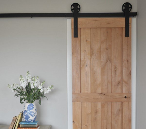 Matte black hardware for doors is a trend that I love seeing and using. Here is an example of barn door hardware in a matte black finish seen at Ira News.