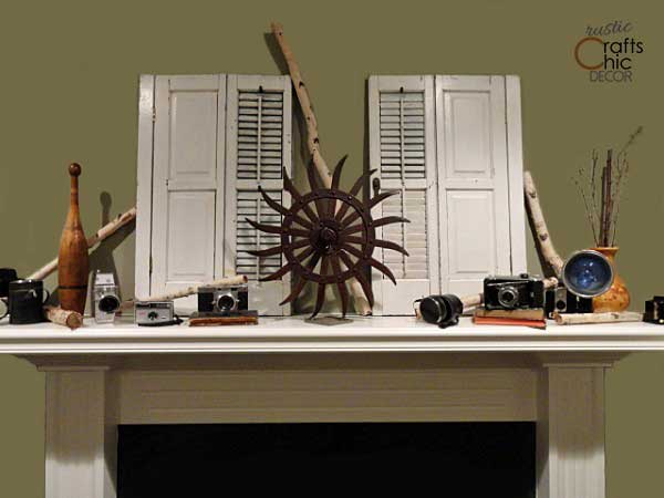 Branches are also a good filler in mantel displays. As you can see, the branches on this mantel work to tie in the random decor pieces.