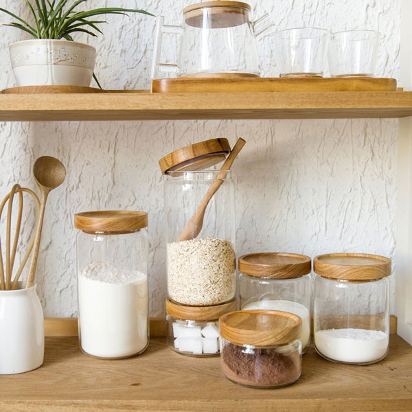 These could be displayed on any open shelving or counter space for extra storage.