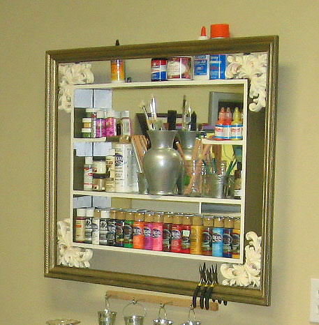 Feeling that there could be something wonderful in the future for that piece, I decided to throw it up, temporarily, in my craft room to hold paints and other supplies.