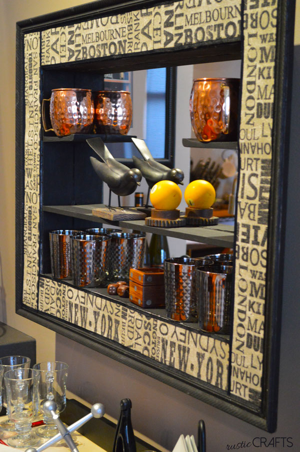 Well today, I decided to finally give it a brand new fun look. I wanted to have a display over my bar cart for glassware storage.
