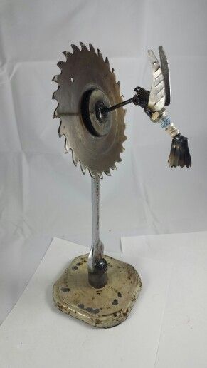 Since his projects were normally a bigger scale, like furniture or yard art, the pieces of scrap metal he collected were also large. I tend to like small projects with gears, pulleys or springs that require little storage. We have since moved the welder to our cabin and now collect scrap metal on a as needed basis.